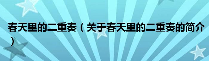 大家好,春天里的二重奏,關于春天里的二重奏的簡介很多人還不知道,現在讓我們一起來看看吧!