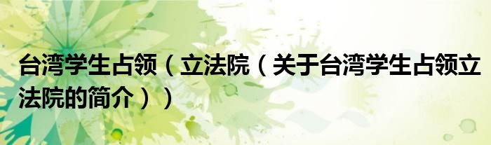 本文關于臺灣學生占領 立法院的簡介就講解完畢,希望對大家有所幫助。