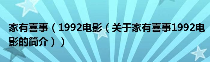 本文關于家有喜事 1992 電影的簡介就講解完畢,希望對大家有所幫助。