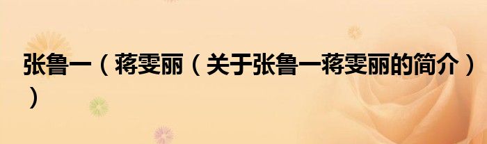 大家好,張魯一 蔣雯麗,關于張魯一 蔣雯麗的簡介很多人還不知道,現在讓我們一起來看看吧!