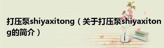 大家好,打壓泵shiyaxitong,關于打壓泵shiyaxitong的簡介很多人還不知道,現在讓我們一起來看看吧!