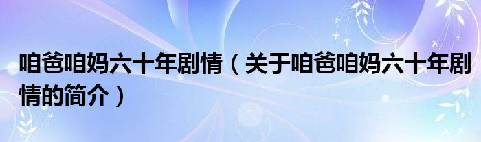 本文關于咱爸咱媽六十年劇情的簡介就講解完畢,希望對大家有所幫助。