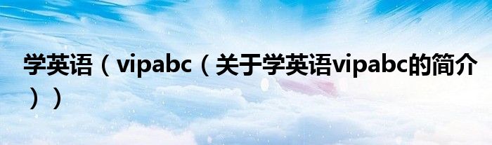 本文關于學英語 vipabc的簡介就講解完畢,希望對大家有所幫助。