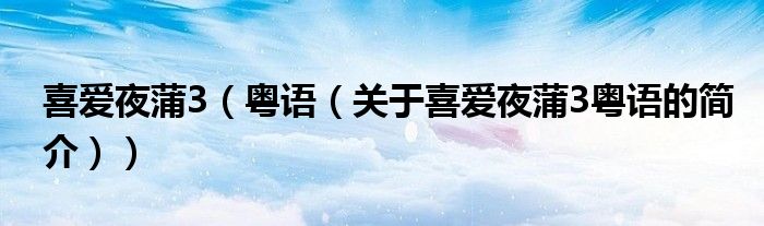 本文關于喜愛夜蒲3 粵語的簡介就講解完畢,希望對大家有所幫助。