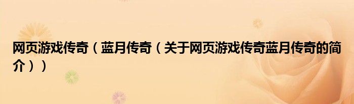 大家好,網頁游戲傳奇 藍月傳奇,關于網頁游戲傳奇 藍月傳奇的簡介很多人還不知道,現在讓我們一起來看看吧!