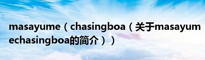 本文關于masayume chasing boa的簡介就講解完畢,希望對大家有所幫助。