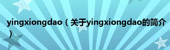 大家好,yingxiongdao,關于yingxiongdao的簡介很多人還不知道,現在讓我們一起來看看吧!