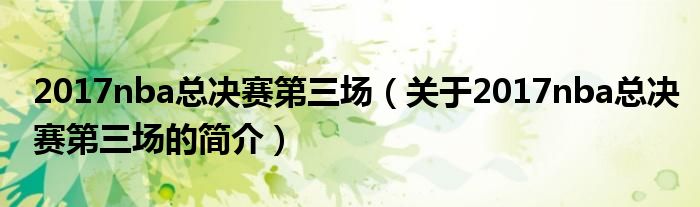 本文關(guān)于2017nba總決賽第三場(chǎng)的簡(jiǎn)介就講解完畢,希望對(duì)大家有所幫助。