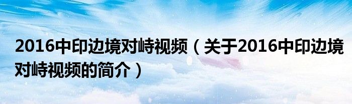 大家好,2016中印邊境對峙視頻,關(guān)于2016中印邊境對峙視頻的簡介很多人還不知道,現(xiàn)在讓我們一起來看看吧!