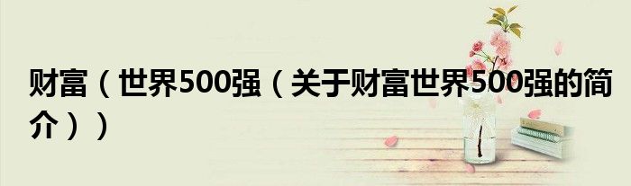 大家好,財富 世界500強,關于財富 世界500強的簡介很多人還不知道,現(xiàn)在讓我們一起來看看吧!