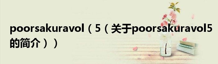 大家好,poorsakuravol 5,關于poorsakuravol 5的簡介很多人還不知道,現在讓我們一起來看看吧!
