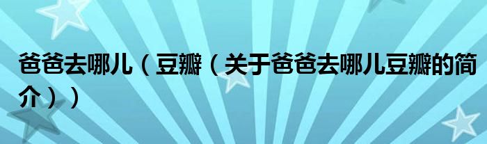 大家好,爸爸去哪兒 豆瓣,關于爸爸去哪兒 豆瓣的簡介很多人還不知道,現在讓我們一起來看看吧!