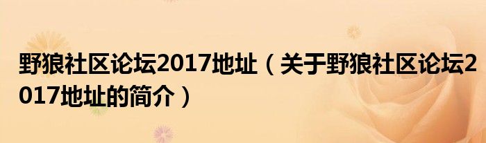 本文關于野狼社區論壇2017地址的簡介就講解完畢,希望對大家有所幫助。