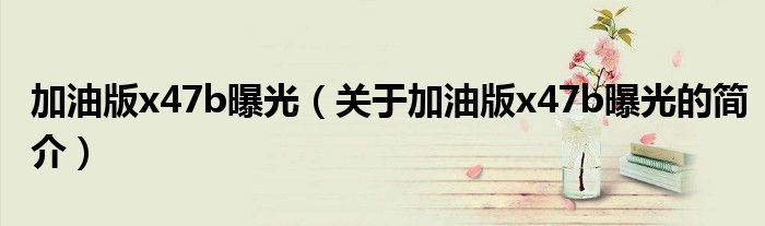 本文關于加油版x47b曝光的簡介就講解完畢,希望對大家有所幫助。