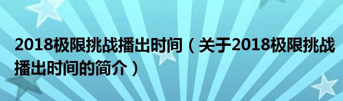 本文關于2018極限挑戰播出時間的簡介就講解完畢,希望對大家有所幫助。