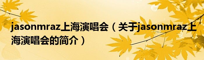 本文關于jasonmraz上海演唱會的簡介就講解完畢,希望對大家有所幫助。