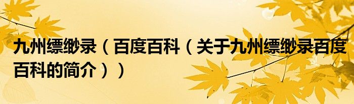 本文關于九州縹緲錄 百度百科的簡介就講解完畢,希望對大家有所幫助。