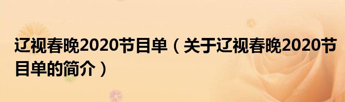 本文關于遼視春晚2020節(jié)目單的簡介就講解完畢,希望對大家有所幫助。