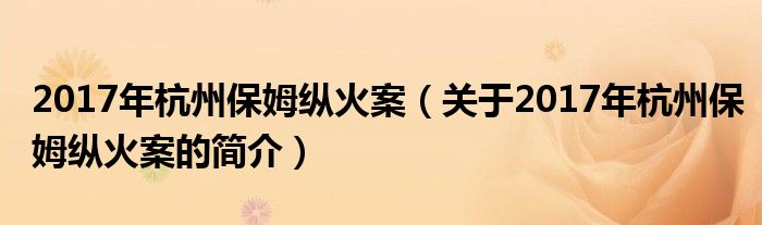 本文關(guān)于2017年杭州保姆縱火案的簡介就講解完畢,希望對(duì)大家有所幫助。