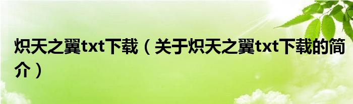 本文關于熾天之翼txt下載的簡介就講解完畢,希望對大家有所幫助。