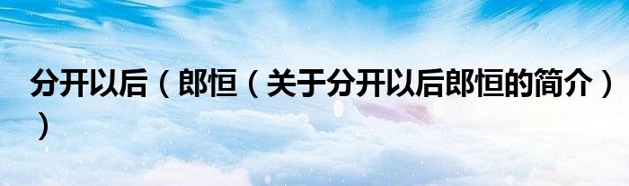 大家好,分開以后 郎恒,關于分開以后 郎恒的簡介很多人還不知道,現在讓我們一起來看看吧!