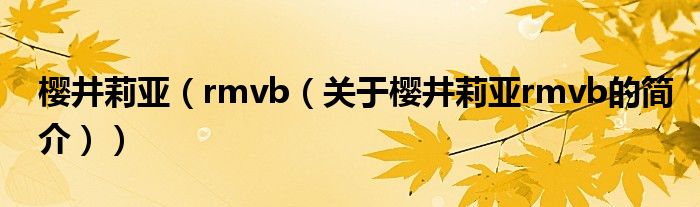 本文關于櫻井莉亞 rmvb的簡介就講解完畢,希望對大家有所幫助。