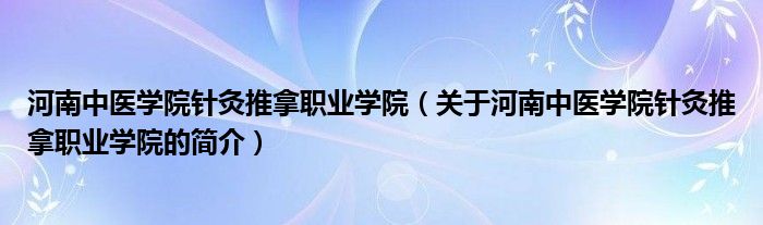 本文關(guān)于河南中醫(yī)學(xué)院針灸推拿職業(yè)學(xué)院的簡介就講解完畢,希望對大家有所幫助。