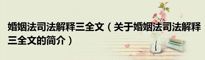 大家好,婚姻法司法解釋三全文,關于婚姻法司法解釋三全文的簡介很多人還不知道,現在讓我們一起來看看吧!