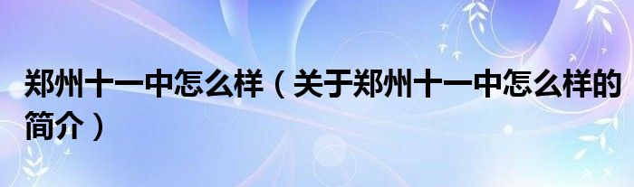 本文關于鄭州十一中怎么樣的簡介就講解完畢,希望對大家有所幫助。