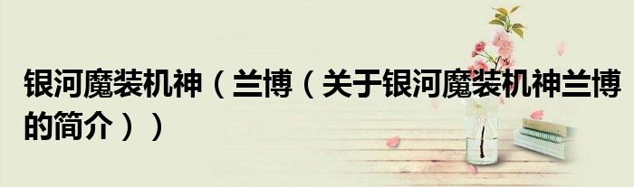 大家好,銀河魔裝機神 蘭博,關于銀河魔裝機神 蘭博的簡介很多人還不知道,現在讓我們一起來看看吧!