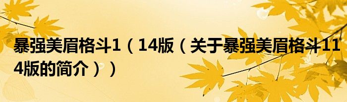 本文關于暴強美眉格斗1 14版的簡介就講解完畢,希望對大家有所幫助。
