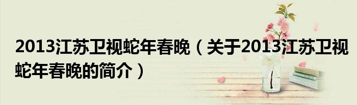本文關于2013江蘇衛視蛇年春晚的簡介就講解完畢,希望對大家有所幫助。
