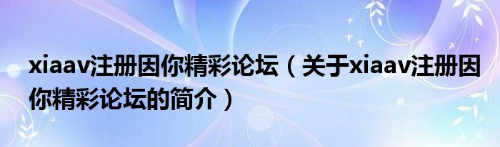 大家好,xiaav注冊因你精彩論壇,關于xiaav注冊因你精彩論壇的簡介很多人還不知道,現在讓我們一起來看看吧!
