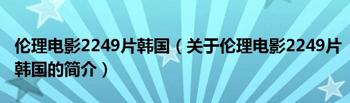 本文關于倫理電影2249片韓國的簡介就講解完畢,希望對大家有所幫助。