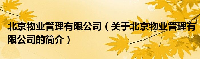 本文關(guān)于北京物業(yè)管理有限公司的簡(jiǎn)介就講解完畢,希望對(duì)大家有所幫助。