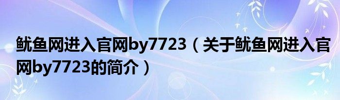 本文關于魷魚網進入官網by7723的簡介就講解完畢,希望對大家有所幫助。