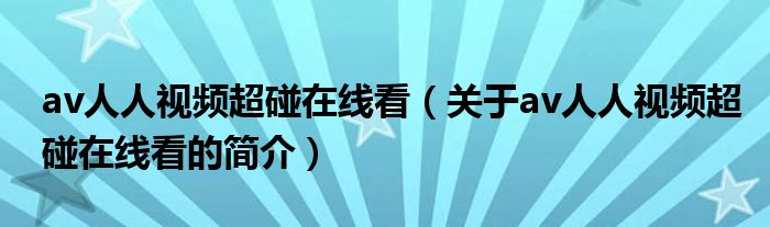 大家好,av人人視頻超碰在線看,關于av人人視頻超碰在線看的簡介很多人還不知道,現在讓我們一起來看看吧!