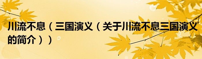 本文關于川流不息 三國演義的簡介就講解完畢,希望對大家有所幫助。