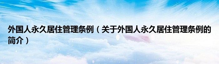 本文關于外國人永久居住管理條例的簡介就講解完畢,希望對大家有所幫助。