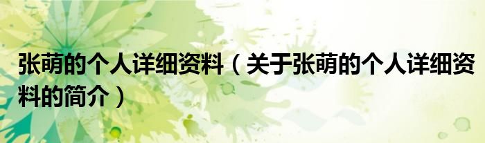 大家好,張萌的個人詳細資料,關于張萌的個人詳細資料的簡介很多人還不知道,現(xiàn)在讓我們一起來看看吧!