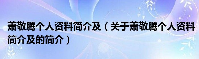 大家好,蕭敬騰個(gè)人資料簡(jiǎn)介及,關(guān)于蕭敬騰個(gè)人資料簡(jiǎn)介及的簡(jiǎn)介很多人還不知道,現(xiàn)在讓我們一起來看看吧!