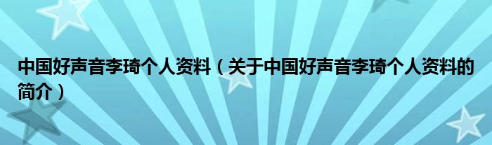 大家好,中國好聲音李琦個(gè)人資料,關(guān)于中國好聲音李琦個(gè)人資料的簡(jiǎn)介很多人還不知道,現(xiàn)在讓我們一起來看看吧!