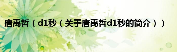 本文關于唐禹哲 d1秒的簡介就講解完畢,希望對大家有所幫助。