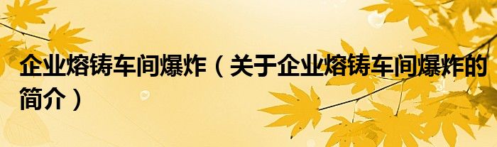 本文關于企業(yè)熔鑄車間爆炸的簡介就講解完畢,希望對大家有所幫助。