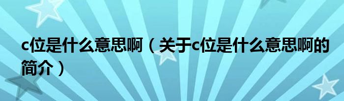 大家好,c位是什么意思啊,關于c位是什么意思啊的簡介很多人還不知道,現(xiàn)在讓我們一起來看看吧!