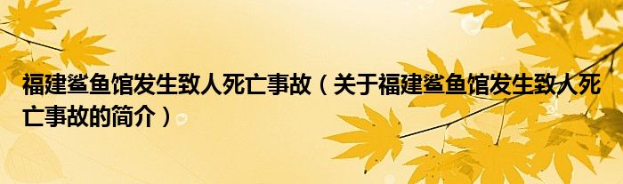 大家好,福建鯊魚館發生致人死亡事故,關于福建鯊魚館發生致人死亡事故的簡介很多人還不知道,現在讓我們一起來看看吧!