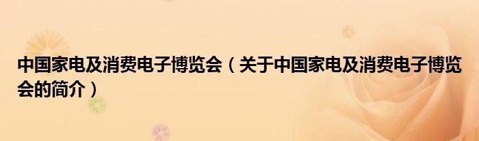本文關于中國家電及消費電子博覽會的簡介就講解完畢,希望對大家有所幫助。