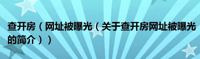 本文關于查開房 網址被曝光的簡介就講解完畢,希望對大家有所幫助。