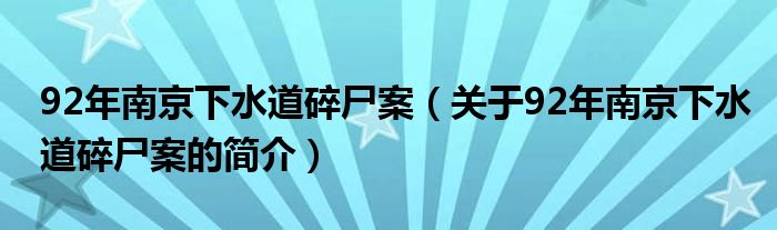 92年南京下水道碎尸案(關于92年南京下水道碎尸案的簡介)