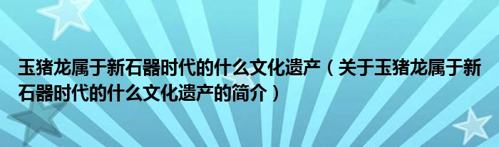 本文關于玉豬龍屬于新石器時代的什么文化遺產的簡介就講解完畢,希望對大家有所幫助。